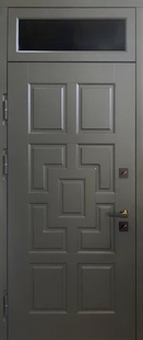 Утепленная высокая термодверь с остекленной фрамугой и темно-серыми плитами МДФ — это выбор тех, кто ценит стиль и функциональность. Панели из МДФ легко очищаются, не требуют сложного ухода и сохраняют презентабельный вид на протяжении многих лет. Формируют целостный образ входной группы. Оформление подойдет тем, кто ищет надёжность и эстетику.